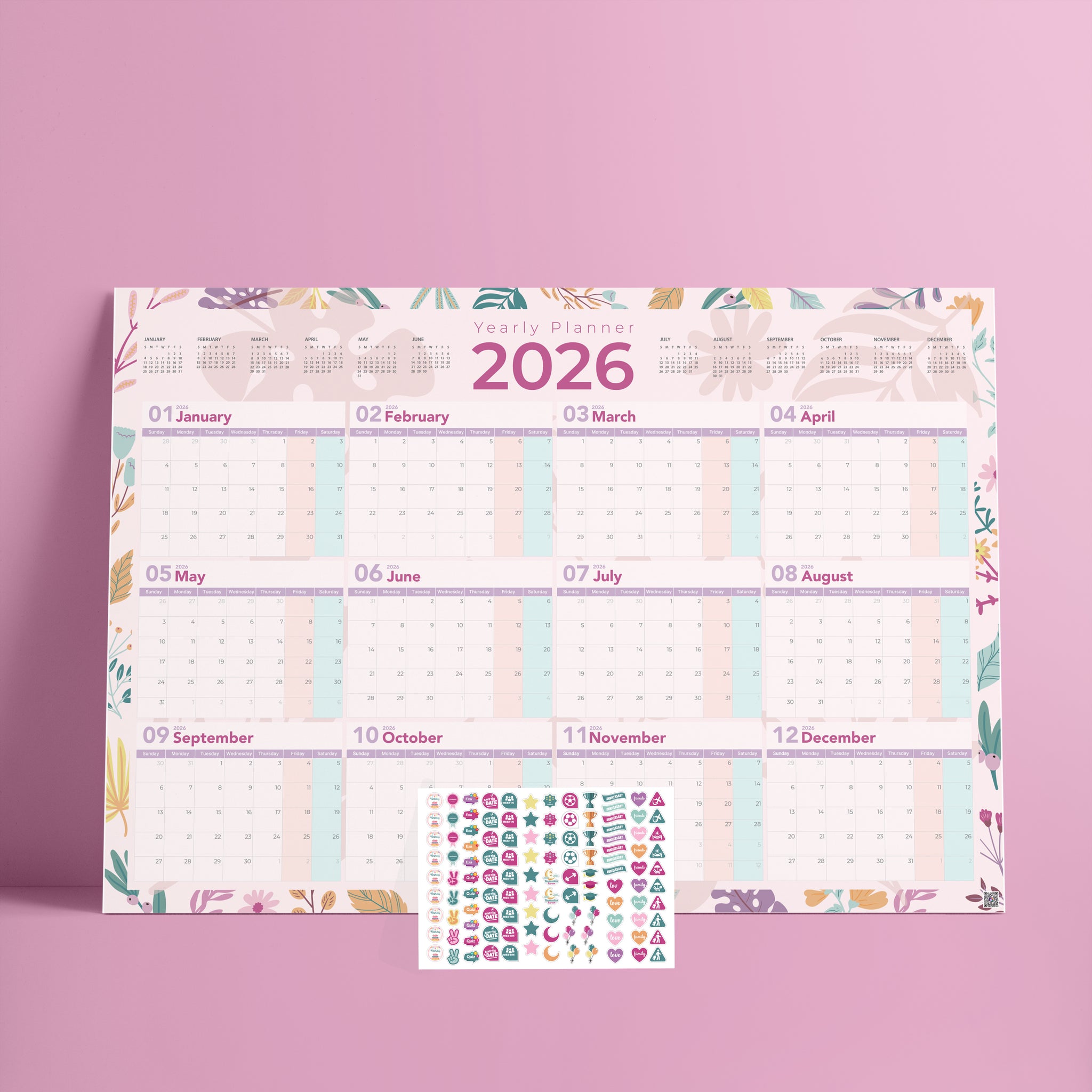 Stay organized and inspired with our 2026 Yearly Wall Planner! This beautifully designed planner is perfect for keeping track of important dates, appointments, and events throughout the year. Made to brighten up your space, it’s not just functional but also a delightful addition to your wall decor. Along with the planner, you’ll receive a vibrant sticker sheet featuring designs for all occasions. Whether it's birthdays, holidays, or special events, these stickers will help you personalize your planner and add a touch of fun to your planning routine. Make 2025 your best year yet with our planner and sticker set, designed to keep you on track and celebrate life’s special moments!