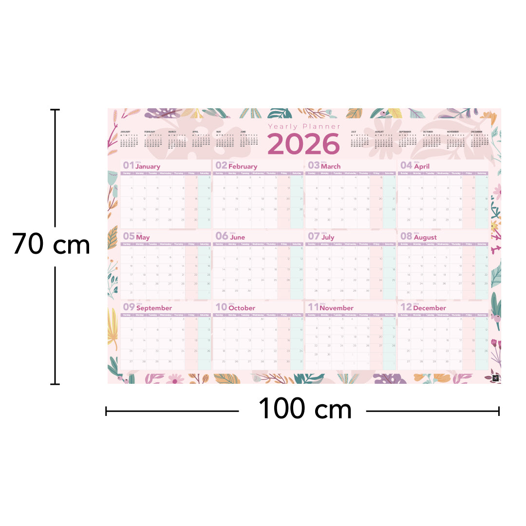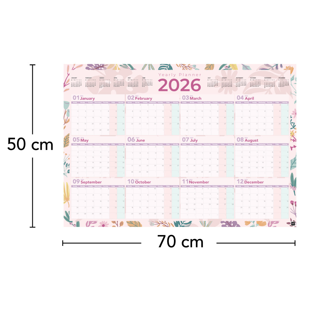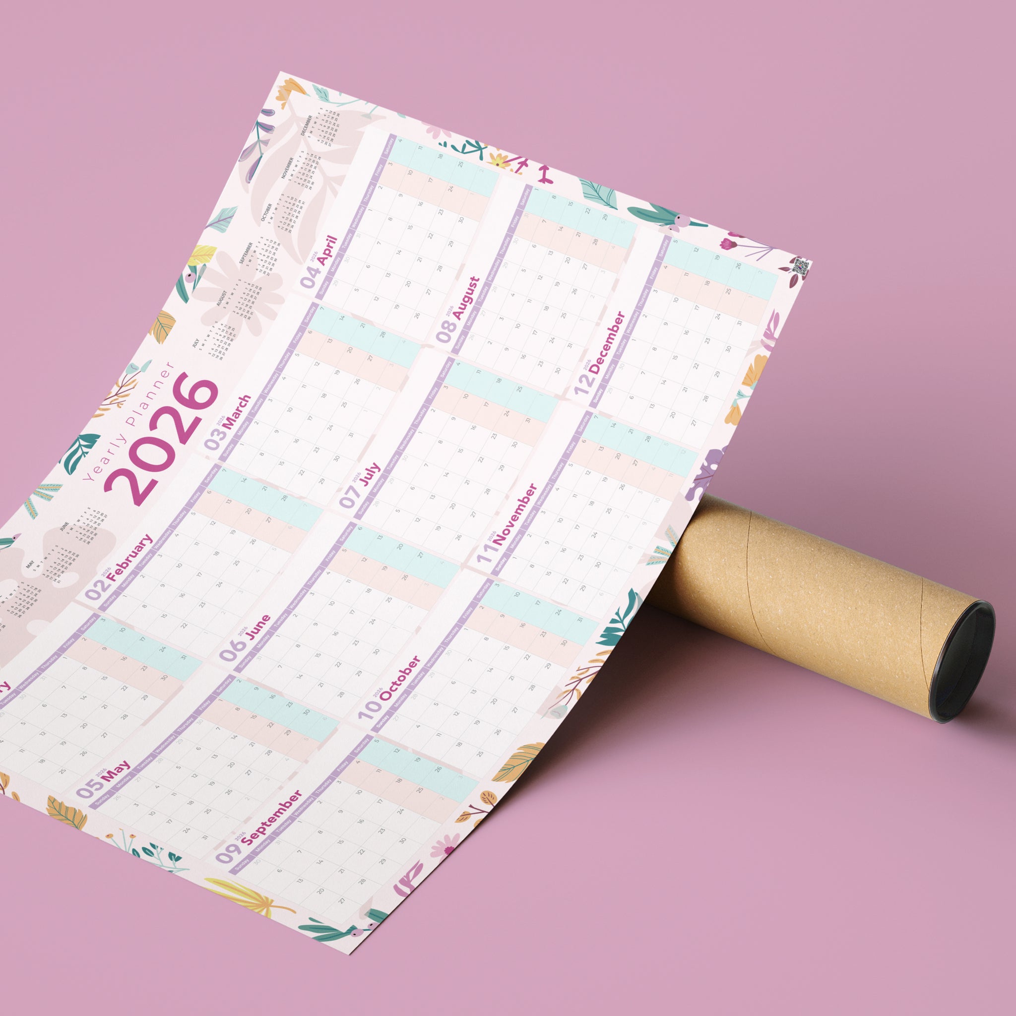 حافظ على تنظيمك واستلهام أفكارك مع مخطط الحائط السنوي لعام 2026! هذا المخطط مصمم بشكل جميل مثالي لتتبع التواريخ والمواعيد والأحداث المهمة طوال العام. صُمم لإضفاة البهجة على مساحتك، فهو ليس عمليًا فحسب، بل إنه أيضًا إضافة رائعة لديكور الحائط الخاص بك. إلى جانب المخطط، ستتلقى ورقة ملصقات نابضة بالحياة تتميز بتصميمات لجميع المناسبات. سواء كانت أعياد ميلاد أو عطلات أو مناسبات خاصة، ستساعدك هذه الملصقات على تخصيص مخططك وإضافة لمسة من المرح إلى روتين التخطيط الخاص بك. اجعل عام 2026 أفضل عام لك حتى الآن مع مخططنا ومجموعة الملصقات، المصممة لإبقائك على المسار الصحيح والاحتفال بلحظات الحياة الخاصة!